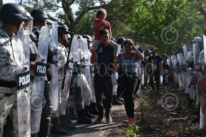 FRONTERA HIDALGO, CHIAPAS, 23ENERO2020.- Después de un diálogo con las autoridades mexicanas, la caravana que cruzó esta mañana por el río Suchiate fue detenida por al menos 300 elementos de la Guardia Nacional y elementos del Instituto Nacional de Migración. Con violencia fueron encapsulados en el área donde descansaban. Momentos después los hicieron subir a autobuses que esperan estaban estacionados en la carretera. Los migrantes denunciaron que las autoridades no les informaron a donde serían trasladados, al menos 600 migrantes fueron detenidos. FOTO: ISABEL MATEOS/CUARTOSCURO.COM
