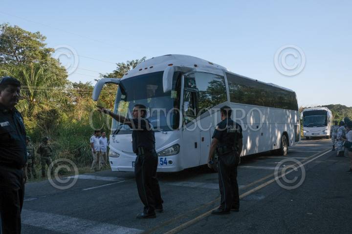 FRONTERA HIDALGO, CHIAPAS, 23ENERO2020.- Después de un diálogo con las autoridades mexicanas, la caravana que cruzó esta mañana por el río Suchiate fue detenida por al menos 300 elementos de la Guardia Nacional y elementos del Instituto Nacional de Migración. Con violencia fueron encapsulados en el área donde descansaban. Momentos después los hicieron subir a autobuses que esperan estaban estacionados en la carretera. Los migrantes denunciaron que las autoridades no les informaron a donde serían trasladados, al menos 600 migrantes fueron detenidos. FOTO: ISABEL MATEOS/CUARTOSCURO.COM