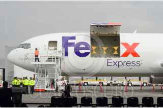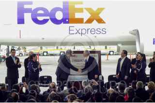 Alfredo del Mazo Maza, Gobernador del Estado de México y Julio Barrionuevo Vicepresidente Senior de Operaciones para América Latina y el Caribe de FedEx Express inauguraron el nuevo recinto fiscalizado de FedEx Express en el Aeropuerto Internacional de Toluca (AIT). FOTO: CRISANTA ESPINOSA AGUILAR /CUARTOSCURO.COM