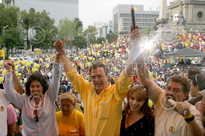 MÉXICO, D.F. 27NOVIEMBRE2005.- El asambleista Alfredo Hernández Raigosa, la directora del deporte del DF, Dione Anguiano, el precandidato perredista a la jefatura de gobierno del DF, Marcelo Ebrard y su esposa durante el concurso de baile "Bailando por marcelo" organizado en el angel de la independencia, en la ciudad de México. FOTO: Miguel Dimayuga/CUARTOSCURO.COM