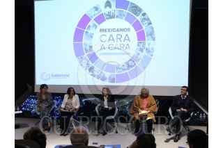 CIUDAD DE MÉXICO, 23ENERO2020.- Adriana Berrueto, Isabela Corduneanu, Ana María Olabuenaga, Alejandro Moreno y Rossana Fuentes, durante la presentación del libro, "Mexicanos Cara a Cara: Reflejos de una década", realizada Torre Reforma. FOTO: ROGELIO MORALES /CUARTOSCURO.COM