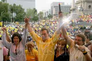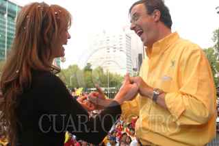 MÉXICO, D.F. 27NOVIEMBRE2005.- El asambleista Alfredo Hernández Raigosa, la directora del deporte del DF, Dione Anguiano, el precandidato perredista a la jefatura de gobierno del DF, Marcelo Ebrard y su esposa durante el concurso de baile "Bailando por marcelo" organizado en el angel de la independencia, en la ciudad de México. FOTO: Miguel Dimayuga/CUARTOSCURO.COM