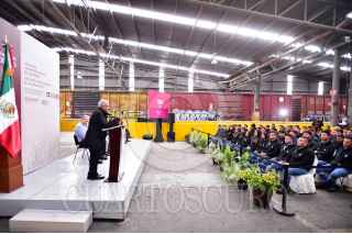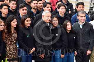 Andrés Manuel López Obrador, presidente de México en “Jóvenes Construyendo el Futuro. Un año Impulsando a la Juventud”, en Ramos Arizpe, Coahuila. Lo acompañaron Horacio Duarte, subsecretario de Empleo de la STyPS; Miguel Ángel Riquelme Solís, Gobernador de Coahuila; Luisa María Alcalde, Secretaria de Trabajo y Previsión Social y Alfonso Romo Garza, Jefe de la Oficina de la Presidencia. FOTO: PRESIDENCIA /CUARTOSCURO.COM