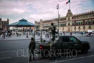 CIUDAD DE MÉXICO, 24ENERO2020.- Elementos del ejercito, resguardan el Zócalo Capitalino durante esta tarde. FOTO: ANDREA MURCIA/CUARTOSCURO.COM