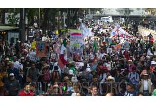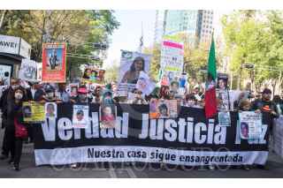 CIUDAD DE MÉXICO, 26ENERO2020.- La Caminata por la Verdad, Paz y Justicia que convocó el poeta Javier Sicilia partió de la Estela de Luz al Zócalo, la manifestación estuvo integrada por cientos de familiares de personas desaparecidas o que han sido víctimas de la violencia que vive el país, como la familia LeBáron; nueve integrantes de su comunidad fueron asesinadas en una emboscada, entre ellos seis niños. Durante el trayecto el contingente paró en cada uno de los Antimonumentos que están sobre avenida Reforma, avenida Juárez y en el Zócalo. FOTO: MOISÉS PABLO/CUARTOSCURO.COM