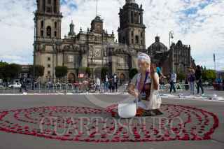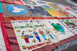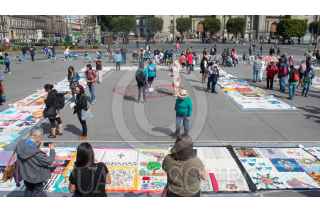 CIUDAD DE MÉXICO, 26ENERO2020.- Un grupo de mujeres presentaron en la explanada del Zócalo capitalino la Manta de la Curación: Pieza por Pieza y País por País, con el fin de generar conciencia sobre la violencia en contra de los niños, las mujeres y la madre tierra. La gran manta expone el trabajo de mujeres en tela de distintas partes de México y el mundo, expresando su realidad y la violencia colectiva del mundo. Cada pieza está elaborada con diversas técnicas como bordado, collage, pintura, grabado, impresion y escritura. FOTO: MAGDALENA MONTIEL/CUARTOSCURO.COM