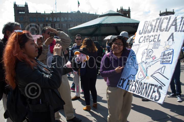 CIUDAD DE MÉXICO, 26ENERO2020.- Capitalinos en compañía de Youtubers pro AMLO, se manifestaron en la explanada del Zócalo Capitalino para pedir que se enjuicie a ex presidentes de México. Durante la manifestación se recabaron firmas para presentarlas al presidente y se comience con los juicios. FOTO: MAGDALENA MONTIEL/CUARTOSCURO.COM