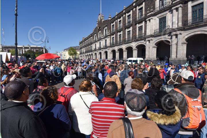 Ejidatarios de Santa María Tulpetlac, Ecatepec, bloquearon diversas calles de la ciudad de Toluca y Palacio de Gobierno denunciando el despojo de tierras por parte de dependencias gubernamentales, para construir un centro comercial y viviendas, lo que ha provocado que se vean afectados no solo por el lado del despojo si no también en su actividad agrícola. FOTO: CRISANTA ESPINOSA AGUILAR /CUARTOSCURO.COM