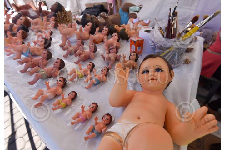 Reparadores de imágenes religiosas instaladas en el estacionamiento del Parque a Colosio, reparan las imágenes del Niño Dios para tenerlas listas para el 2 de Febrero Día de la Candelaria, las reparaciones van desde un dedo hasta rehacerlos nuevamente, los costos van desde los 30 pesos hasta los 250 ya dependiendo del daño que llevará, después de haber sido removidos del Jardín Zaragoza el trabajo ha bajado por lo que esperan que en los siguientes días lleguen más clientes. FOTO: CRISANTA ESPINOSA AGUILAR /CUARTOSCURO.COM