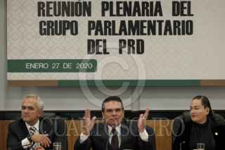 CIUDAD DE MÉXICO, 27ENERO2020.- Ángel Ávila Ramírez, integrante del PRD; el senador Miguel Ángel Mancera; Silvano Aureoles Conejo, gobernador de Michoacán, y Verónica Juárez Piña, presidenta del PRD, encabezaron la reunión plenaria del PRD. FOTO: GRACIELA LÓPEZ /CUARTOSCURO.COM