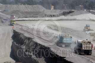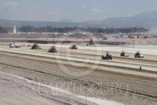 SANTA LUCÍA, ESTADO DE MÉXICO, 29ENERO2020.- A 104 días del inicio de la construcción del Nuevo Aeropuerto Internacional Felipe Ángeles en los terrenos de la Base Aérea Militar no. 1 de Santa Lucía, el gobierno federal reporta un avance del 3.92%, desde el 17 de octubre de 2019, cuando iniciaron las obras. El que será uno de los mayores proyectos en materia de infraestructura de la actual administración está a cargo de la Secretaría de la Defensa Nacional. Durante un recorrido por las obras, el teniente coronel ingeniero constructor Raúl Roldán López, encargado del frente que construye la plataforma y pista militar informó que actualmente 5,400 personas trabajan en dos turnos: diurno y nocturno. Desde un mirador se observa como decenas de camiones de carga y maquinara de excavación trabajan sin cesar, removiendo las toneladas de tierra para darle forma a la pista que usará la aviación militar. Para la cimentación se excavaron cuatro metros, ahí encontraron el suelo ideal para la base de cimentación. El suelo es una de las grandes diferencias con el terreno de Texcoco, donde se pretendía construir el Nuevo Aeropuerto Internacional de la Ciudad (NAIM). Para darle la firmeza y estabilidad a las pistas están siendo revestidas con lo que denominan “terraplenes”, que son una base de material de piedra limosa comprimida de 20 centímetros de espesor, un proceso que repetirán varias veces hasta tener la altura adecuada. El material para hacerlos se extrae de los bancos de préstamo, instalados a pocos metros de la construcción de las pistas. Cada uno de estos terraplenes son analizados por laboratorios independientes expertos en mecánica de suelo, que constatan la consistencia ideal para el soporte de cargas. Se prevé que la primera etapa del aeropuerto esté lista para el 21 de marzo de 2022, sin embargo los militares se han comprometido a entregarla 6 meses antes, para iniciar con las pruebas de aviación. FOTO: MOISÉS PABLO/CUARTOSCURO.C