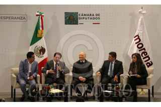 CIUDAD DE MÉXICO, 29ENERO2020.- Alejandro Díaz de León, gobernador del banco de México, Alejandro Gertz Manero, Fiscal General de la República y Mario Delgado, coordinador de Morena en la Cámara de Diputados, durante su partición en el inicio del Segundo Periodo Ordinario del Segundo Año de Ejercicio de la LXIV Legislatura en San Lázaro. FOTO: ROGELIO MORALES /CUARTOSCURO.COM