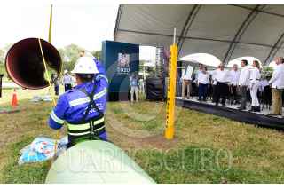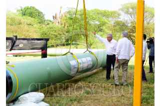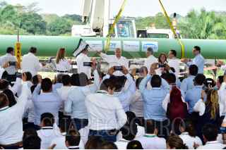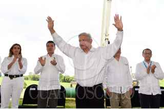 REFORMA, CHIAPAS, 31ENERO2020.- Andrés Manuel López Obrador, presidente de los Estados Unidos Mexicanos, encabezó la Construcción del Gasoducto Cuxtal Fase 1, ranchería La Ceiba, Reforma, Chiapas. Lo acompañaron Adán Augusto López Hernández, Gobernador de Tabasco; Rutilio Cruz Escandón Cadenas, Gobernador de Chiapas; Manuel Bartlett Díaz, Director General de la Comisión Federal de Electricidad; Rocío Nahle García, Secretaria de Energía y Octavio Romero Oropeza, Director de PEMEX. FOTO: PRESIDENCIA/CUARTOSCURO.COM