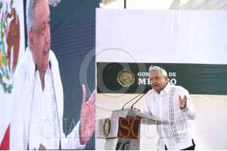 MÉRIDA, YUCATÁN, 01FEBRERO2020.- Andrés Manuel López Obrador, El presidente de los Estados Unidos Mexicanos, encabezó “Programa Integral de Energía para Yucatán. Construcción de la Central Ciclo Combinado Mérida y Gasoducto Cuxtal Fase 2 en la Central Termoeléctrica Mérida II”. Lo acompañan Manuel Bartlett Díaz, director general de la Comisión Federal de Electricidad; Norma Rocío Nahle García, secretaria de Energía; Mauricio Vila Dosal, gobernador de Yucatán; Miguel Torruco Marqués, secretario de Turismo y Graciela Márquez Colín, secretaria de Economía. FOTO: PRESIDENCIA/CUARTOSCURO.COM