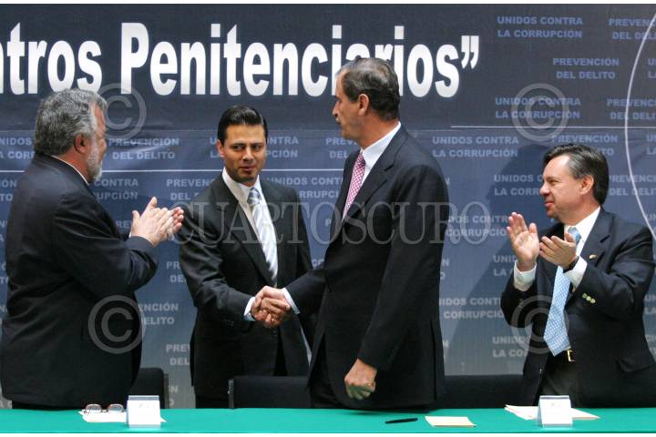 MEXICO, D.F., 29NOVIEMBRE2005.- El jefe de gobierno del Df, Alejandro Encinas, el presidente Vicente Fox y Miguel Gómez Mont, Vicepresidente Ejecutivo de Corporación GEO durante la ceremonia de entrega del crédito número 2, 275, 000 para adquisición de vivienda del presente sexenio. FOTO: Miguel Dimayuga/CUARTOSCURO.COM