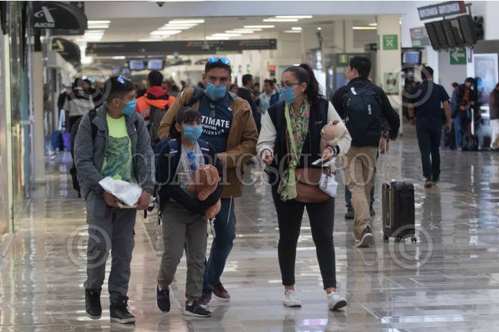 CIUDAD DE MÉXICO, 03FEBRERO2020.- En el Aeropuerto Internacional de la Ciudad de México se observan viajantes con cubrebocas ante la alerta mundial de Coronavirus, que ha dejado un saldo hasta el momento de 362 cmuertos. FOTO: MOISÉS PABLO/CUARTOSCURO.COM