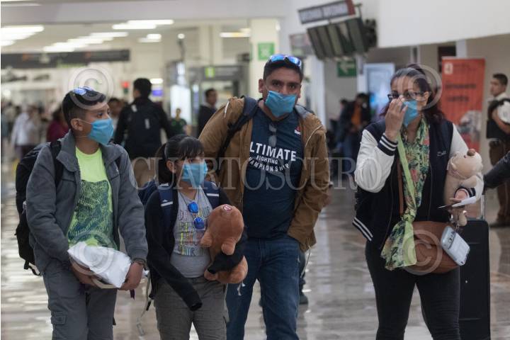 CIUDAD DE MÉXICO, 03FEBRERO2020.- En el Aeropuerto Internacional de la Ciudad de México se observan viajantes con cubrebocas ante la alerta mundial de Coronavirus, que ha dejado un saldo hasta el momento de 362 cmuertos. FOTO: MOISÉS PABLO/CUARTOSCURO.COM