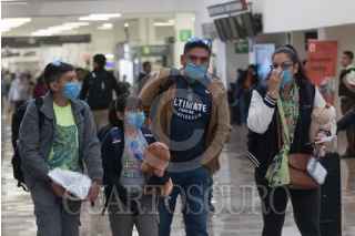 CIUDAD DE MÉXICO, 03FEBRERO2020.- En el Aeropuerto Internacional de la Ciudad de México se observan viajantes con cubrebocas ante la alerta mundial de Coronavirus, que ha dejado un saldo hasta el momento de 362 cmuertos. FOTO: MOISÉS PABLO/CUARTOSCURO.COM