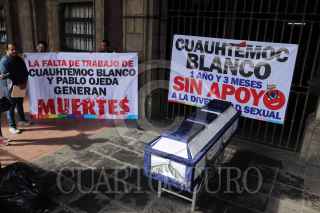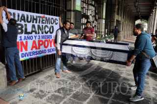 CUERNAVACA, MORELOS, 04FEBRERO2020.- Activistas de la diversidad sexual en el estado se manifestaron en las puertas del palacio de gobierno llevando un ataúd. Acusan desatención de la Secretaria de Gobierno. FOTO: MARGARITO PÉREZ RETANA /CUARTOSCURO.COM