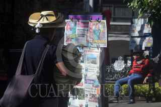 CUERNAVACA, MORELOS, 04FEBRERO2020.- Un joven que vende sombreros igualtecos se detiene frente a un puesto de periódicos para leer los titulares del día. FOTO: MARGARITO PÉREZ RETANA /CUARTOSCURO.COM