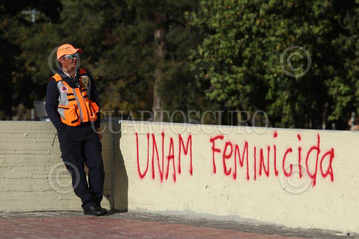 CIUDAD DE MÉXICO, 04FEBRERO2020.- Estudiantes de la Preparatoria 9 convocaron a una marcha para reiterar las demandas de castigo a los profesores y alumnos acusados de violencia de género, por esta razón y otras demandas mantienen un paro de actividades en el plantel que ya lleva más de dos meses. El contingente partió del Parque de la Bombilla rumbo al edificio de la Rectoría de la UNAM, ahí realizaron pintas con sus principales demandas y lanzaron algunas bombas molotov. Personal de vigilancia se mantuvo al margen de la protesta. La comisión de la casa de estudios se negó a acercarse para recibir su pliego petitorio. FOTO: GALO CAÑAS/CUARTOSCURO.COM