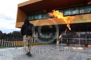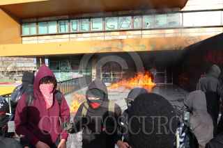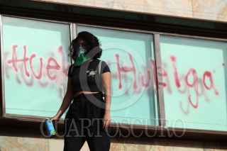 CIUDAD DE MÉXICO, 04FEBRERO2020.- Estudiantes de la Preparatoria 9 convocaron a una marcha para reiterar las demandas de castigo a los profesores y alumnos acusados de violencia de género, por esta razón y otras demandas mantienen un paro de actividades en el plantel que ya lleva más de dos meses. El contingente partió del Parque de la Bombilla rumbo al edificio de la Rectoría de la UNAM, ahí realizaron pintas con sus principales demandas y lanzaron algunas bombas molotov. Personal de vigilancia se mantuvo al margen de la protesta. La comisión de la casa de estudios se negó a acercarse para recibir su pliego petitorio. FOTO: GALO CAÑAS/CUARTOSCURO.COM
