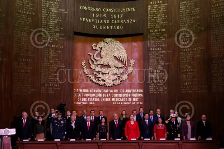 QUERÉTARO, QUERÉTARO, 05FEBRERO2020.- Con motivo del 103 aniversario de la promulgación de la de la Constitución Política de los Estados Unidos Mexicanos de 1917, el presidente Andrés Manuel López Obrador encabezó la ceremonia de conmemoración en el Teatro de la República de la entidad. El jefe del ejecutivo destacó los avances y virtudes que la Carta Magna aportó a la consolidación de la identidad política del país. FOTO: GALO CAÑAS /CUARTOSCURO.COM