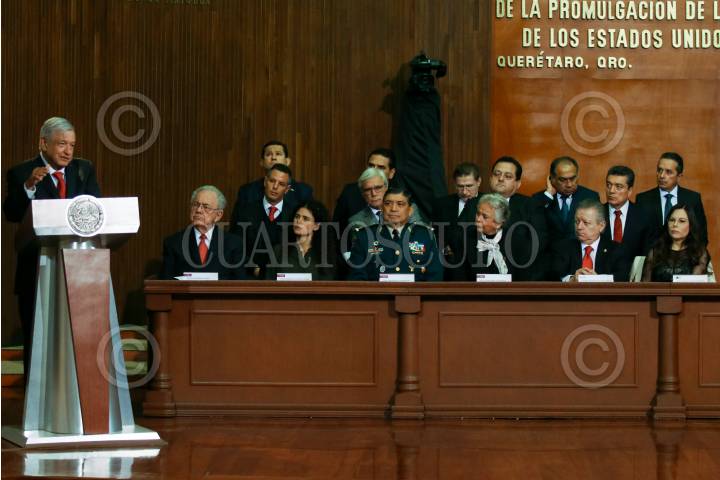 QUERÉTARO, QUERÉTARO, 05FEBRERO2020.- Con motivo del 103 aniversario de la promulgación de la de la Constitución Política de los Estados Unidos Mexicanos de 1917, el presidente Andrés Manuel López Obrador encabezó la ceremonia de conmemoración en el Teatro de la República de la entidad. El jefe del ejecutivo destacó los avances y virtudes que la Carta Magna aportó a la consolidación de la identidad política del país. FOTO: GALO CAÑAS /CUARTOSCURO.COM
