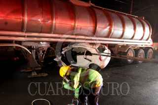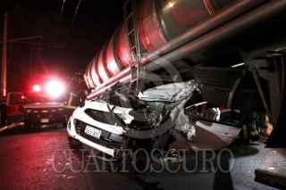 Ciudad de México, 06 febrero 2020. Esta madrugada se registró un accidente vehicular en el cruce de la avenida Gran Canal y Albino Corso colonia Gertrudis Sanchez, en la alcaldía Gustavo A. Madero, con saldo de una persona lesionada. El vehículo compacto intentó ganarle el paso a una pipa de agua potable. Foto: Luis Carbayo/cuartoscuro.com