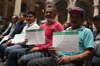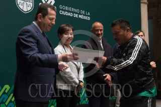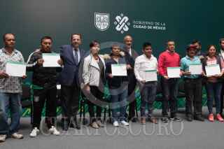 CIUDAD DE MÉXICO, 06FEBRERO2020.- Fadlala Akabani, secretario de Desarrollo Económico (Sedeco); Marina Robles García, secretaria del Medio Ambiente (Sedema), y Jesús Antonio Esteva, secretario de Obras y Servicios, entregaron reconocimientos a trabajadores de limpia de la Ciudad de México, en el Antiguo Palacio del Ayuntamiento. FOTO: MOISÉS PABLO/CUARTOSCURO.COM