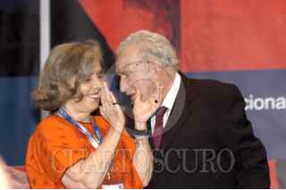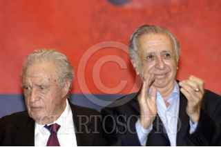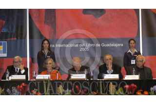 GUADALAJARA, JALISCO 29NOVIEMBRE2005.- Dentro del Marco de la XIX Feria Internacional de Libro de Guadalajara se le rindio un homenaje por su obra editorial a Julio Scherer Garcia, Estuvo acompañado en el presidio por Miguel Angel Granados Chapa, Elena Poniatowska, Vicente Leñero y Carlos Monsivais. FOTO: Sergio Garibay/CUARTOSCURO.COM