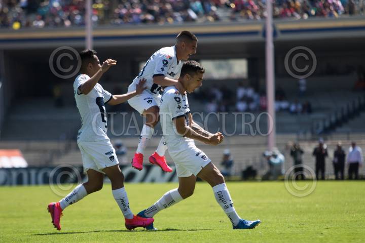 CIUDAD DE MÉXICO, 09FEBRERO2020.- Los Pumas se enfrentan al Atlético de San Luis en el Estadio Olímpico Universitario en partido correspondiente a la jornada 5 de la Liga MX. Los locales se impusieron 4-0; con goles de Carlos González, Fabio Álvarez, y Juan Dinenno. Al inicio del encuentro se saludaron los técnicos Miguel González "Michel" (Pumas) y Guillermo "Memo" Vázquez (Atletico). FOTO: MOISÉS PABLO/CUARTOSCURO.COM