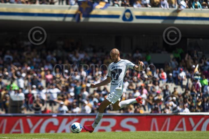 CIUDAD DE MÉXICO, 09FEBRERO2020.- Los Pumas se enfrentan al Atlético de San Luis en el Estadio Olímpico Universitario en partido correspondiente a la jornada 5 de la Liga MX. Los locales se impusieron 4-0; con goles de Carlos González, Fabio Álvarez, y Juan Dinenno. Al inicio del encuentro se saludaron los técnicos Miguel González "Michel" (Pumas) y Guillermo "Memo" Vázquez (Atletico). FOTO: MOISÉS PABLO/CUARTOSCURO.COM