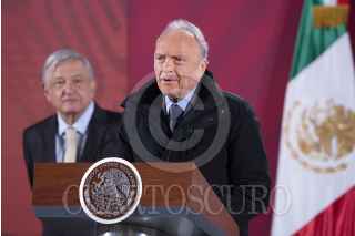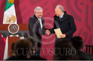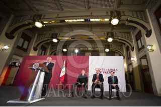 CIUDAD DE MÉXICO, 10FEBRERO2020.- Andrés Manuel López Obrador, Presidente de México; Alejandro Gertz Manero, Fiscal General de la República, y Ricardo Sheffield Padilla, director de la Profeco, durante la conferencia de prensa en Palacio Nacional. FOTO: PRESIDENCIA/CUARTOSCURO.COM