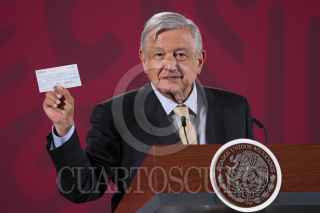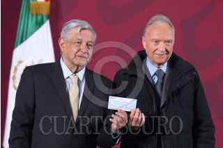 CIUDAD DE MÉXICO, 10FEBRERO2020.- Alejandro Gertz Manero, Fiscal General de la República, entregó un cheque al Presidente de México, Andrés Manuel López Obrador, por la cantidad de dos mil millones de pesos recuperados de casos de corrupción, durante la mañanero. El fiscal no aclaró de cuales casos para no faltar al debido proceso. FOTO: PRESIDENCIA/CUARTOSCURO.COM