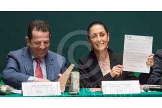 CIUDAD DE MÉXICO, 11FEBRERO2020.- Claudia Sheinbaum Pardo, jefa del Gobierno de la Ciudad, acompañada del titular de Economía de la Capital; Fadlala Akabani Hneide, se reunieron con empresarios y firmaron un convenio de Colaboracón de Pequeñas y Medianas empresas con tiendas departamentales grandes. FOTO: VICTORIA VALTIERRA/CUARTOSCURO.COM