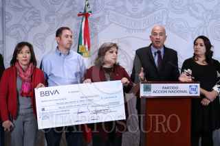CIUDAD DE MÉXICO, 11FEBRERO2020.- El diputado Ector Jaime Ramírez Barba, por el partidos del PAN, acompañado de Diputados de la misma bancada ofrecieron una conferencia de prensa sobre el cheque que recibió ayer el presidente de la República, Andrés Manuel López Obrador, por el fiscal Alejandro Gertz Manero en la conferencia mañanera. FOTO: GRACIELA LÓPEZ /CUARTOSCURO.COM