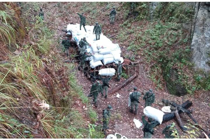 PAPASQUIARO, DURANGO, 12FEBRERO2020.-La Secretaría de la Defensa Nacional informó que en el marco del Plan Nacional de Paz y Seguridad 2018-2024, y para contribuir a la Estrategia Nacional de Prevención de Adicciones “Juntos por la Paz”, elementos del Ejército Mexicano, realizaron el aseguramiento e incineración de hierba con características propias de la mariguana. Lo destruido tiene un valor estimado en el mercado de $2’685,600.00. FOTO: SEDENA /CUARTOSCURO.COM