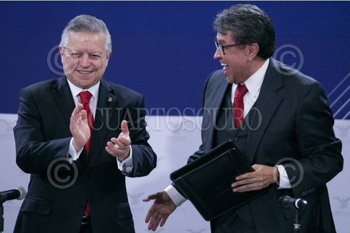 CIUDAD DE MÉXICO, 12FEBRERO2020.- Ante la Suprema Corte de Justicia de la Nación fue presentada la propuesta de Reforma Constitucional en materia Judicial, la cual fue firmada en primeras horas del día por el jefe del ejecutivo, Andrés Manuel López Obrador, y será enviada al pleno del Senado para su aprobación. El acto protocolario estuvo encabezado por Julio Scherzer Ibarra, consejero jurídico de la presidencia; Mónica Fernández Balboa, presidenta de la mesa directiva del Senado; Arturo Zaldívar, ministro presidente de la Suprema Corte de Justicia de la Nación, y Ricardo Monreal, presidente de la Junta de Coordinación Política del Senado (JUCOPO). Dicha propuesta tiene se centra en el combate contra la corrupción y el nepotismo, así como busca conseguir la paridad de género y el fortalecimiento de los defensores públicos para el auxilio legal de los sectores más vulnerables. FOTO: GALO CAÑAS /CUARTOSCURO.COM