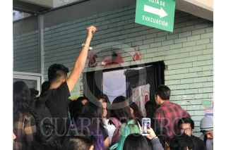 CIUDAD DE MÉXICO, 12FEBRERO2020.- Nuevamente fueron tomadas las instalaciones de la Preparatoria 8 Mixcoac por jóvenes encapuchados. Hoy por la tarde la comunidad estudiantil realizó una asamblea para decidir el regreso a clases tras varias semanas de paro de actividades. Los estudiantes que quieren regresar a clases son mayoría, por lo que amagaron a los que oponen a esto con expulsarlos del plantel, ante esta situación los encapuchados se han parapetados en un salón clases conocido como "El Cubo. FOTO: ADRIANA ÁLVAREZ/CUARTOSCURO.COM
