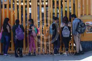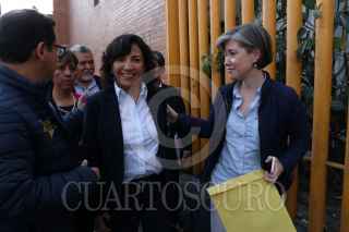 CIUDAD DE MÉXICO, 12FEBRERO2020.- Gabriela Martínez Miranda, directora de la preparatoria número 9 de la UNAM, acompañada de la abogada general de la UNAM, Mónica González, acudieron a dicho plantel para sostener un diálogo con las aristas que mantienen tomadas las instalaciones en protesta ante la violencia de género, acoso y denuncias de abuso por parte de académicos, alumnos y administrativos adentro del plantel y la universidad. La directora estableció que se llegaron a puntos del pliego petitorio pero aún no habría una fecha para retomar las actividades, el día de mañana se instalara una segunda mesa para continuar con los trabajos. La preparatoria “Pedro de Alba” cumple más de dos meses en paro de laboles. FOTO: GALO CAÑAS /CUARTOSCURO.COM