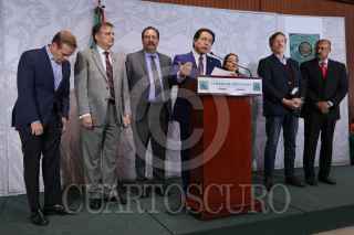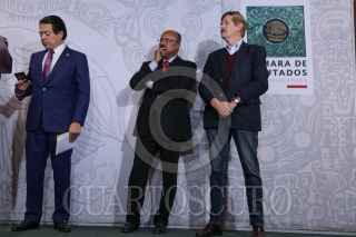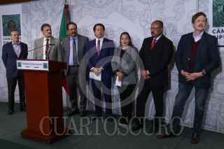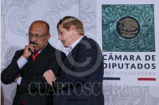 CIUDAD DE MÉXICO, 13FEBRERO2020.- Los coordinadores Arturo Escobar, Partido Verde; Tonatiuh Bravo, Movimiento Ciudadano; Reginaldo Sandoval, PT; Verónica Juárez, PRD; Mario Delgado, Morena; René Juárez, PRI, y Juan Carlos Romero Hicks, PAN, ofrecieron una conferencia de prensa sobre la elección de los cuatro consejeros en el INE, en la Cámara de Diputados. FOTO: GRACIELA LÓPEZ /CUARTOSCURO.COM