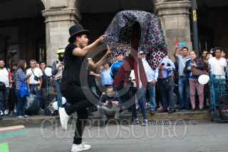 CIUDAD DE MÉXICO, 13FEBRERO2020.- Artistas urbanos que se colocan en la calle de Madero se manifestaron por que las autoridades capitalinas no los han dejado instalarse desde el 7 de enero. Ellos exigen una audiencia con la Jefa de Gobierno, Claudia Sheinbaum Pardo, para denunciar el hostigamiento policial que han padecido en estas últimas semanas. FOTO: MOISÉS PABLO/CUARTOSCURO.COM