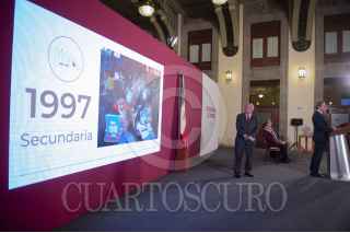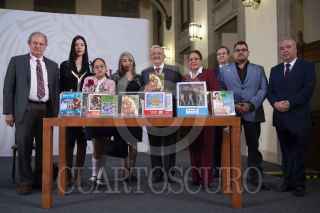 CIUDAD DE MÉXICO, 13FEBRERO2020.- Andrés Manuel López Obrador, Presidente de México, ahí presentó los nuevos libros de texto gratuitos que la Secretaría de Educación Pública entregará a los alumnos de nivel básico. Estuvieron presentes Esteban Moctezuma Barragán, Secretario de Educación Pública; Miguel Antonio Meza Estrada, Director de la Comisión Nacional de Libros de Texto Gratuitos y Carmen Alicia Rivera García, profesora jubilada, Escuela Primaria 'Cuauhtémoc' de San Luis Potosí. FOTO: PRESIDENCIA/CUARTOSCURO.COM