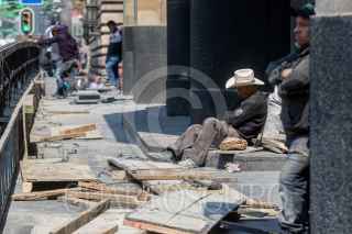 CIUDAD DE MÉXICO, 13FEBRERO2020.- Un obrero toma una siesta en la hora de la comida, en las obras de remodelación de las banquetas que rodean el edificio sede del Banco de México, ubicado en Eje Central y 5 de Mayo, Centro Histórico. FOTO: MOISÉS PABLO/CUARTOSCURO.COM