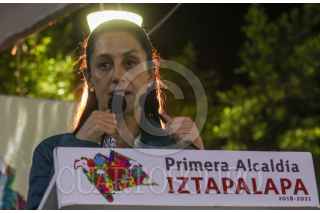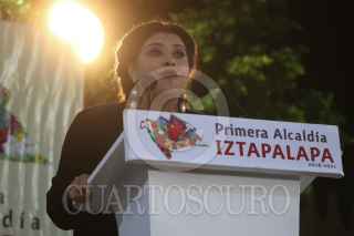 CIUDAD DE MÉXICO, 13FEBRERO2020.- Claudia Sheinbaum, jefa de gobierno de la ciudad, Clara Brugada, alcaldesa de Iztapalapa, acompañados de diputados federales y locales, durante la inauguración de una ruta más del programa "Camino Mujeres Libres y Seguras", en la colonia Reforma Política de la alcaldía Iztapalapa. FOTO: ROGELIO MORALES /CUARTOSCURO.COM