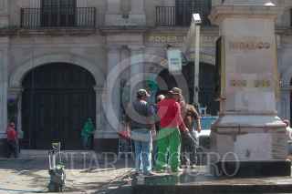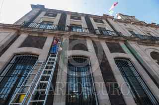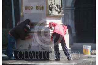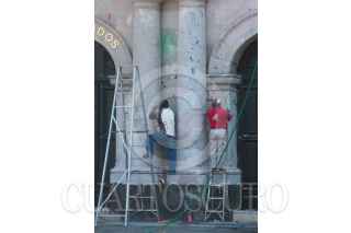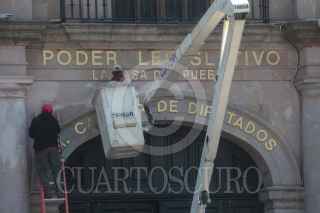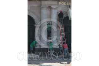 Realizan trabajos de limpieza en la Cámara de Diputados y Palacio Municipal después de las pintas que se hicieron en estos edificios por manifestantes contra el Tarifazo. FOTO: CRISANTA ESPINOSA AGUILAR /CUARTOSCURO.COM