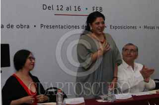 VILLAHERMOSA, TABASCO, 14FEBRERO2020.- En el marco de las Jornadas Pellicerianas, Alejandra Frausto titular de la Secretaria de Cultura, anunció que 102 piezas de la Cultura Olmeca, serán prestadas de Tabasco a una exposición en París, Francia. Así mismo minutos mas tarde entrego en compañía del gobernador Adán Augusto López Hernández el Premio Iberoamericano Bellas Artes de Poesía a Christian Peña por su obra Expediente X.V. FOTO: EDGAR JASSO/CUARTOSCURO.COM