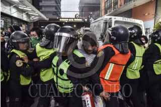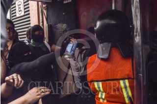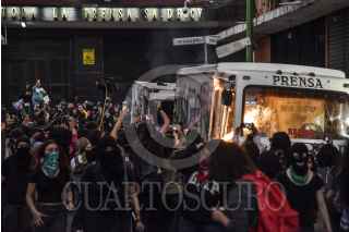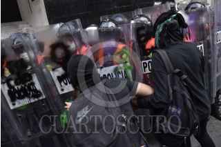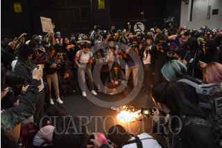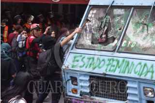 Mujeres de grupos colectivos feminista se manifestaron al exterior de las instalaciones del periódico La Prensa después de la publicación realizada por el feminicidio de Ingrid Escamilla.