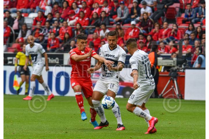 La escuadra de Pumas continúa invicta y logra sacar el triunfo ante los Diablos Rojos del Toluca con un marcador final de 2-3, como parte de la jornada 6 del Torneo Clausura de la Liga MX. FOTO: CRISANTA ESPINOSA AGUILAR /CUARTOSCURO.COM